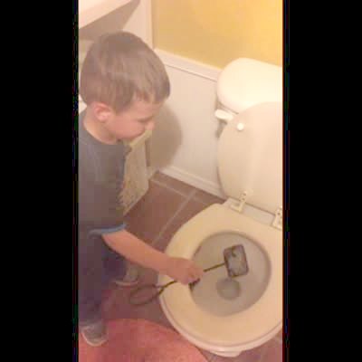 A tot boy puts a fish in a toilet because he and his mom think it's dead. It swims down the toilet and his mom realizes it's still alive.