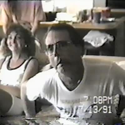 A woman lays on the floor next to a vacuum and explains I was vacuuming under the bed and it caught my hair and now my pony tail is stuck.... I got eaten alive, can you please get me out of here." When she realizes she's being filmed she curses at her husband.