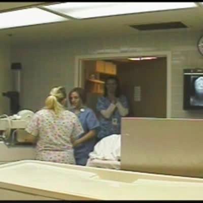 "Not Dead Ahead" Young man pranks 2 young women at work while they take an X-Ray of a man they think is dead. Man sits up & starts moving, scares women. Practical joke, Halloween, corpse.