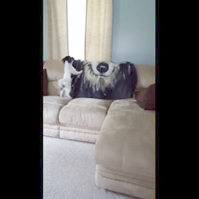 P/V - P.O.V watches small dog chases camera, Frisbee, etc. & other oddities to music