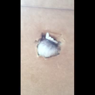Curiosity Got the Cat. Kitten gets stuck in a hole and falls through.