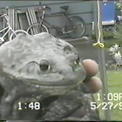 Man picks up frog in backyard, frog screams