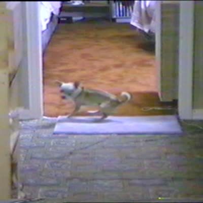 A woman and a Boston Terrier enter a house and when the woman says, "Ready, set, sploot!" the dog lies on the floor with her legs spread.