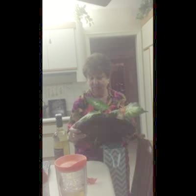 A woman finds a bun in her oven and asks if that's what her son got for her. She says "Bun in the oven" repeatedly before she realizes what it means and her family cheers because her son and daughter-in-law are pregnant.