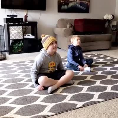 A man and a woman announce to their two young sons that they're pregnant. Their incredulous oldest says "Wait, so you guys had sex?"