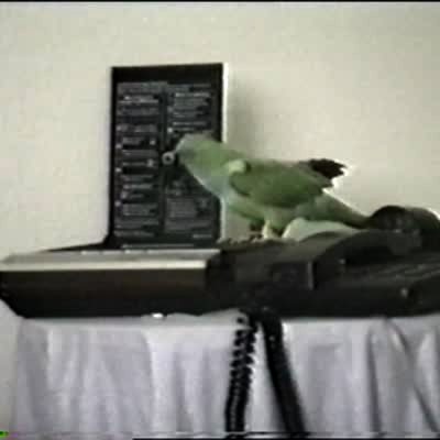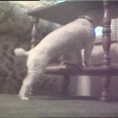 "Leave Your Message At The Bark" Man leaves dog a message on the answering machine. The dog plays it three times. He howls when he hears his owner's voice on message