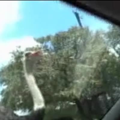 A giraffe chews on a family's car antenna as they go through a drive-through safari. It then picks up the windshield wiper and breaks it.