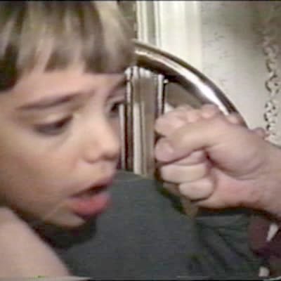 A man plays peekaboo with his tot girl with a towel over his face and makes her laugh, but then he pulls the towel down to reveal his beard is gone and she gets sad.