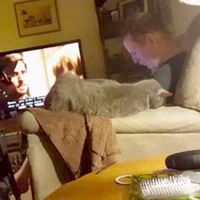 A senior woman wears a virtual reality headset in the kitchen and gets confused about how she's supposed to use it. When she figures it out, she starts to scream when she gets scared on the rollercoaster and waves her arms around. At 1:40, a man grabs her chair and shakes it to make it feel like she's shaking in real life too.