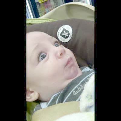 Baby boy babbles, then mom says "I love you" and it sounds like baby says the same thing back to her