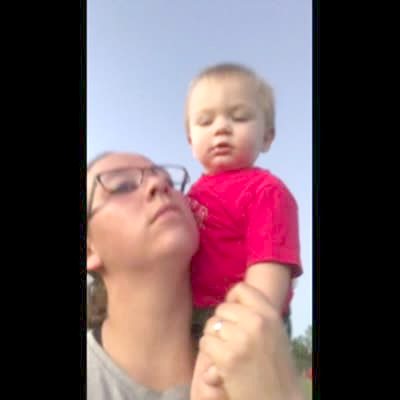 A senior man does a face swap with a baby and says that he really likes AFV indoors.