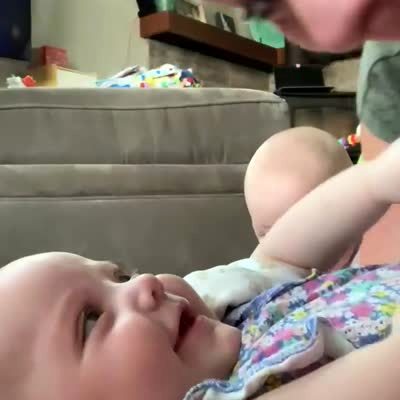 A man fakes sneezes and makes twin baby boys laugh hysterically.
