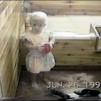 A man walks into a bedroom where he says he smells baby powder and it looks like it is snowing with all of the baby powder a tot girl is playing with.