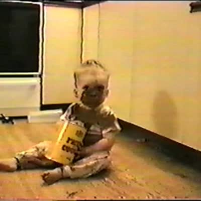 A woman discovers a white powdered footprint trail that leads to a tot boy and tot girl's room where the floor is covered in baby powder and the boy and girl skate and slide in it, unaware that what they did was wrong.