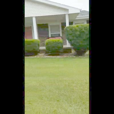 A woman throws a ball that explodes to a man with a baseball bat for a gender reveal in the yard. Her husband hits the ball and part of it hits his wife in the back and she falls.