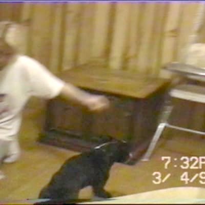 A man terrifies a woman on Halloween by tricking her into thinking he's thrown a baby boy to the floor when it's really a toy baby in a costume. She tells him he ought to be shot. Caucasian. Short tail.