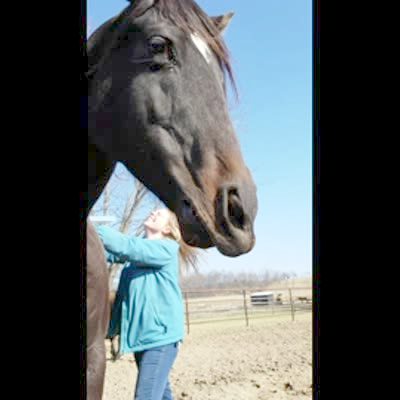 Horse scratches its butt on a tree. The horse backs up & bends over the tree to scratch an itch.