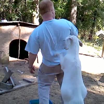 Dog pulls on a rope to scratch his back he rocks back and forth. Smart dog.