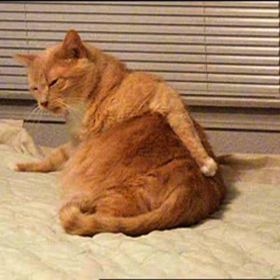 A cat meows and moans while a woman scratches its back/ butt at a vet.
