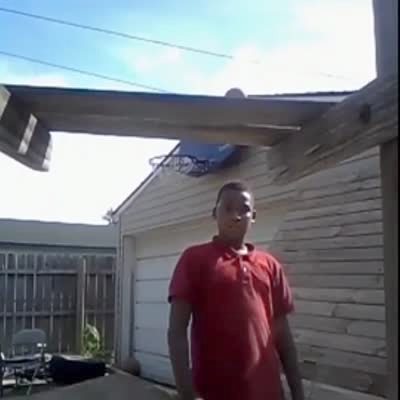 Bonehead Kid. Boy on trampoline sinks basket and breaks backboard. (montage) basketball