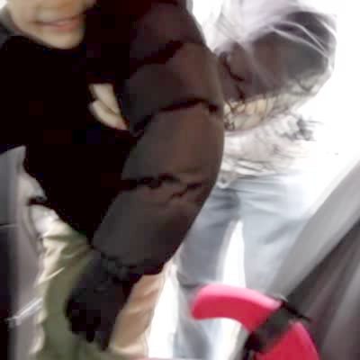 A boy tot cries in the back seat of a car when he finds out that he's going on a surprise trip to Disney World. He says he rather stay home and the woman behind the camera is surprised by his reaction.