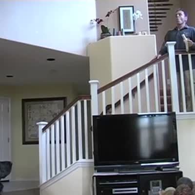 Practical Joke. Man pretends to get electrocuted to scare his friend; with banana BANANA ELECTROCUTION SCARE
