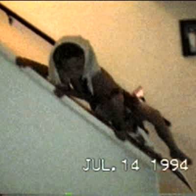 Boy sings National Anthem in shower, sees parents videotaping him, screams. Classic face.