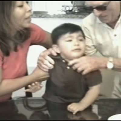 "Birthday Blowout" Tot boy can't wait to blow out his birthday candles. He repeatedly jumps on top of the table to blow them out & parents can barely hold him back. "Birthday Blowout"