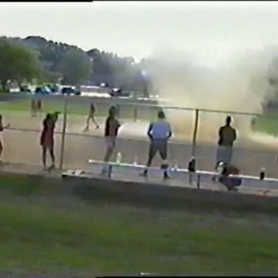 Funnel cloud forms on softball field - looks like tiny tornado. Good visual.