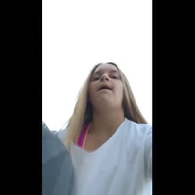 A teen girl in a driveway tries to shoot a basketball into a net but misses and shatters a light over a garage.