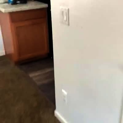 A tot boy has cheese on his face and he babbles that he doesn't want his mother to check the kitchen. His mother walks into the kitchen and finds their dachshund dog covered in parmesan cheese and he babbles that it needs a bath, then wipes it with a napkin.