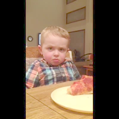 A tot boy frowns at the dinner table when a woman burps loudly, scaring the boy and causing him to smile.