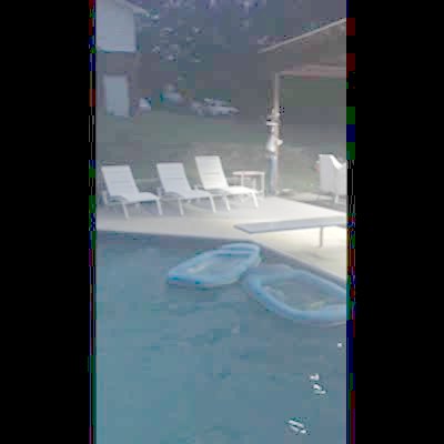 A teen girl sets a raft in a pool and tries to jump on it but misses and belly flops into the water.