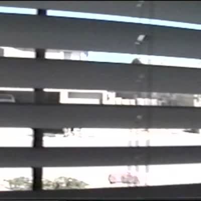 A woman falls in the backyard when she tries to climb into an above ground swimming pool using the wrong side of a large ladder. Music rights not cleared.