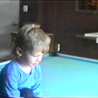 "Billiard Baby" Baby boy sits on pool table and throws pool balls, five in a row into the pockets. Adults are thrilled.
