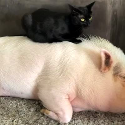 In a living room, a large dog sits on a couch and plays with a kitten as he gently paws at her. The kitten paws back and jumps at him but the dog paws again and knocks her off of the couch.