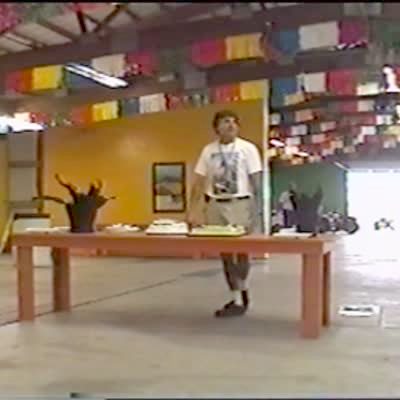 Man gives speech and a cake in front of him explodes. His reaction isn't that good. Prank, practical joke