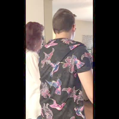 "Blast with the Laughing Gas" - A woman tries to help a teen boy across the room to the couch and he stops to dance and sing because he is on anesthesia after wisdom tooth removal surgery