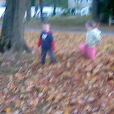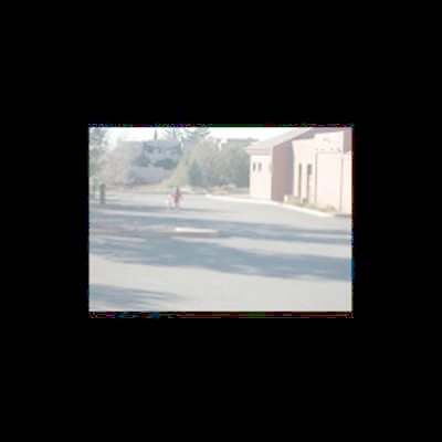Little boy rides his bike & tries to jump off, the bike keeps going and boy has to chase it down. Low resolution clip, poor qualty.