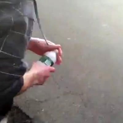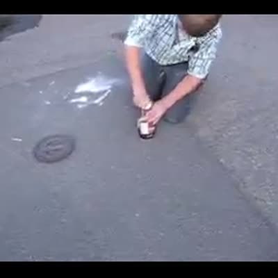 Man makes baking soda and vinegar bomb, it explodes in his hand on the sidewalk. Bonehead.