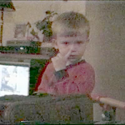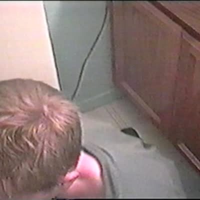 A young boy puts an air compressor up to his face. He says, "I've been waiting for this moment my whole life." As he turns it on, it blows a booger from is nose onto his forehead.