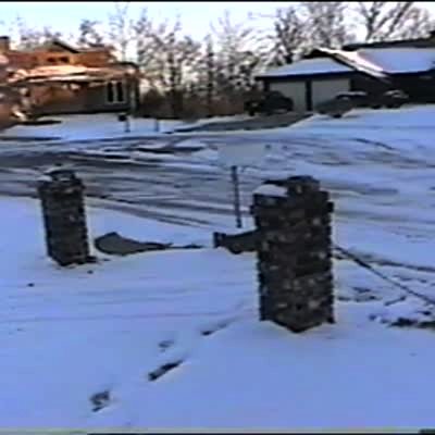 Man films kid playing in the snow, he pans right to show girl with two large snot strings hanging out of her nose.