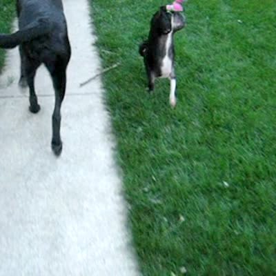 Chihuahua has on shoes and life jacket and walks funny. Booties.