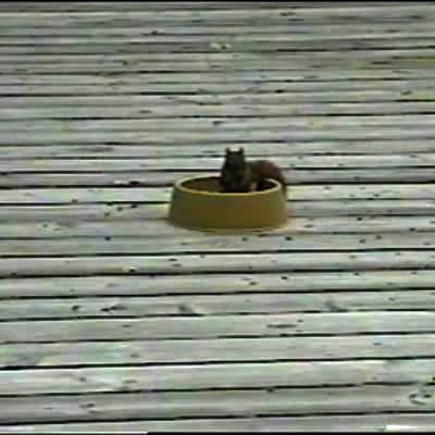 Duck has upper hand in play-fight with dachshund dog.