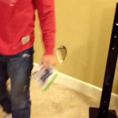 A man turns a valve on a pump in the driveway to demonstrate how it works and it shoots out muck at a high pressures and sprays it all over his son.