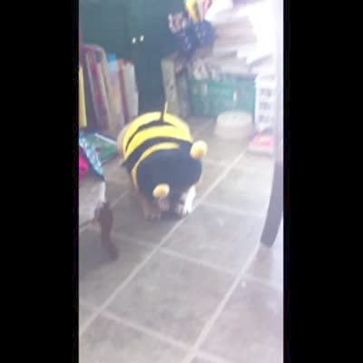 AA: Dress your pet. Dog - Bulldog dressed as a bumble bee