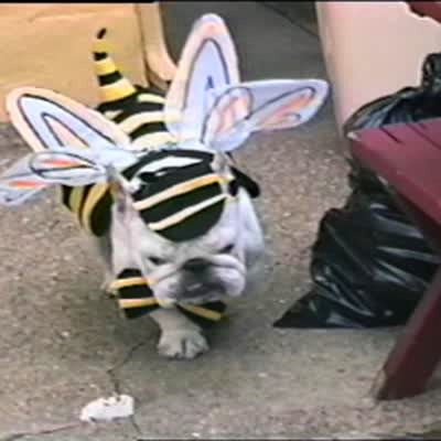 AA: Dress your pet. Dog - Bulldog dressed as a bumble bee