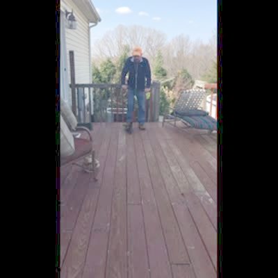 Rabbit and a really big rattlesnake fight in man's yard. Bunny chases snake up tree, snake runs away.