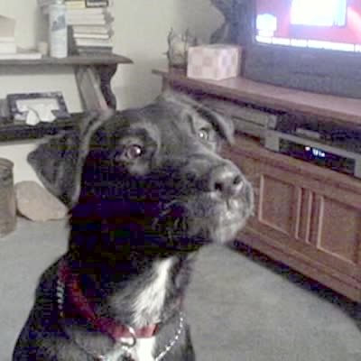 Small dog has freakishly long tongue when it licks things or lets it hang in the air. Funny visual.