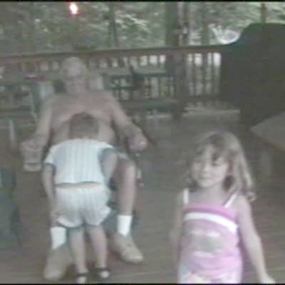 boy puts a lightning bug in grandpa's belly button & his belly button lights up. Funny image Senior man
